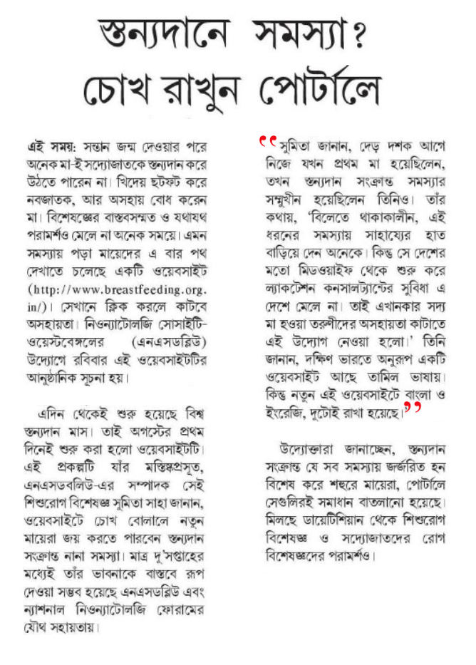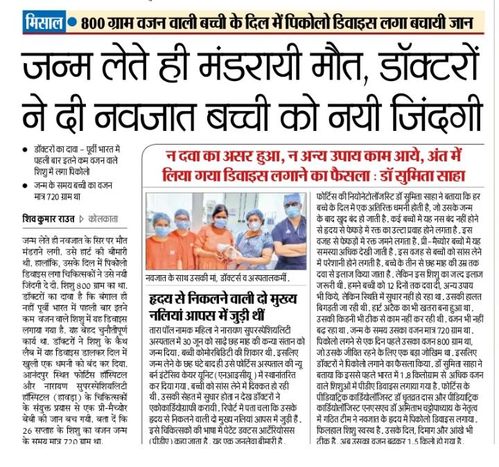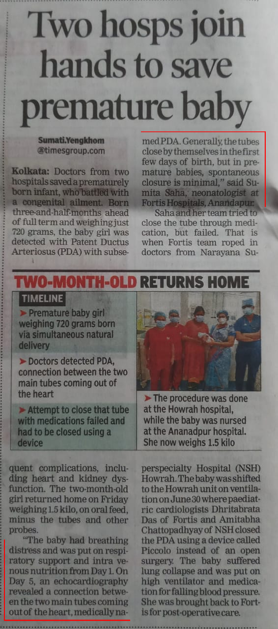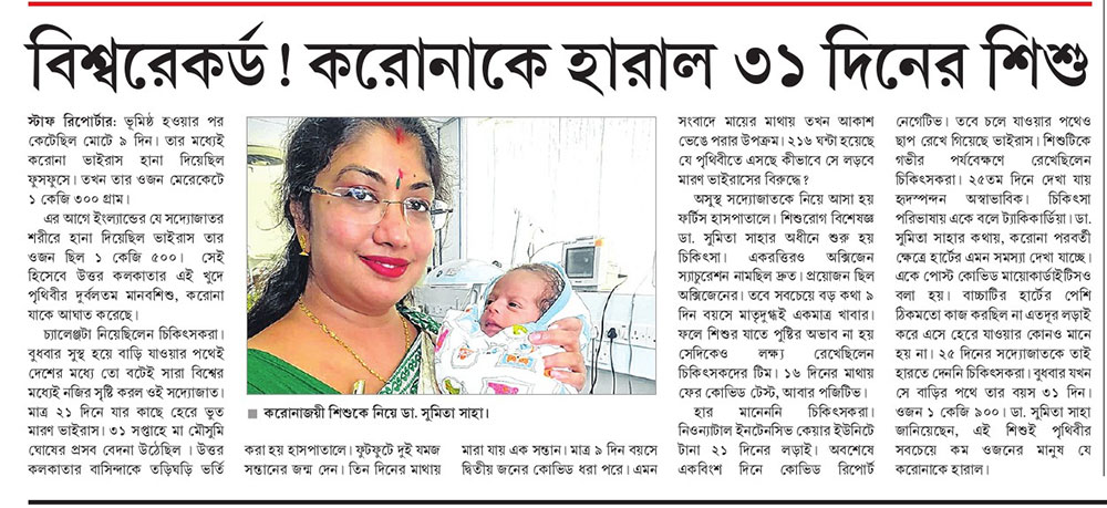 Dr. Sumita Saha, MBBS (Gold medallist), DCH (UK), MRCPCH (UK), is a Consultant Neonatologist and Paediatrician, practising in leading hospitals in Kolkata like Fortis Hospital (Anandapur), Woodlands Multispecialty Hospital, Asia-Columbia Hospital, Bellevue clinic and Mission of Mercy Hospital. Her Paediatric and Neonatal training took place in the U.K. where she worked for 8 years in renowned centres like Nottingham city Hospital, Leeds general infirmary etc.